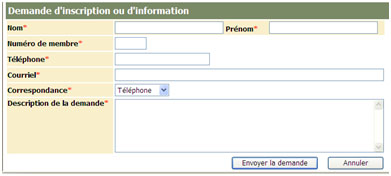 Tous les champs sont obligatoires . De plus, il est important d'indiquer si vous désirez que l'on vous communique votre nom d'usager et votre mot de passe temporaire par courriel ou par téléphone en sélectionnant le type de correspondance désirée.